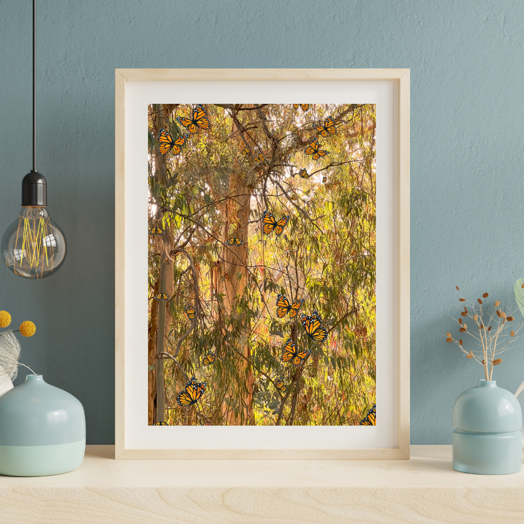 The monarchs that reside in Natural Bridges State Park in Santa Cruz are part of a magical space that locals and visitors love. This piece captures that magic through original watercolor art mixed with photography (shot on iPhone).